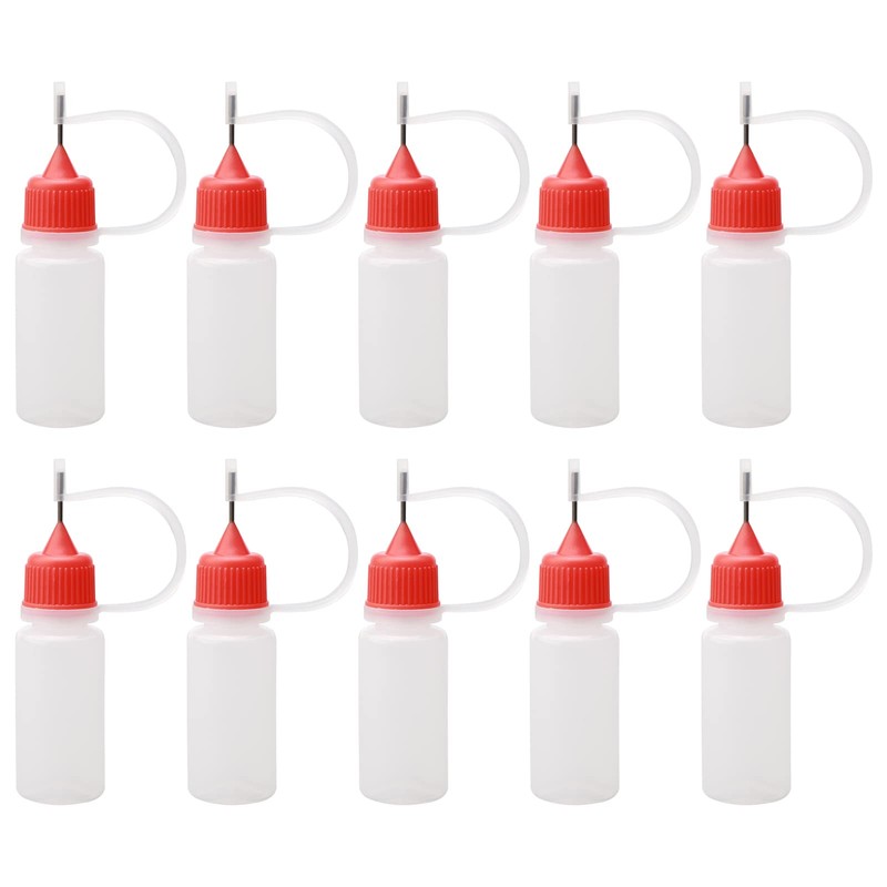 Pxyelec 10pcs×Squeezable Empty Liquid Dropper Filling Bottles Needle Tip & Cap Red Cap (10ml)