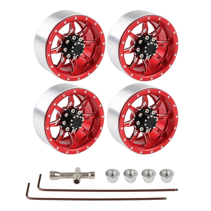 - Set of 4 Beadlock Wheels: Upgrade your RC crawler's appearance and performance with our set of 4 Wheel Rims. Featuring a metal beadlock design, these wheels offer a unique and eye-catching look that will turn heads on the trails.