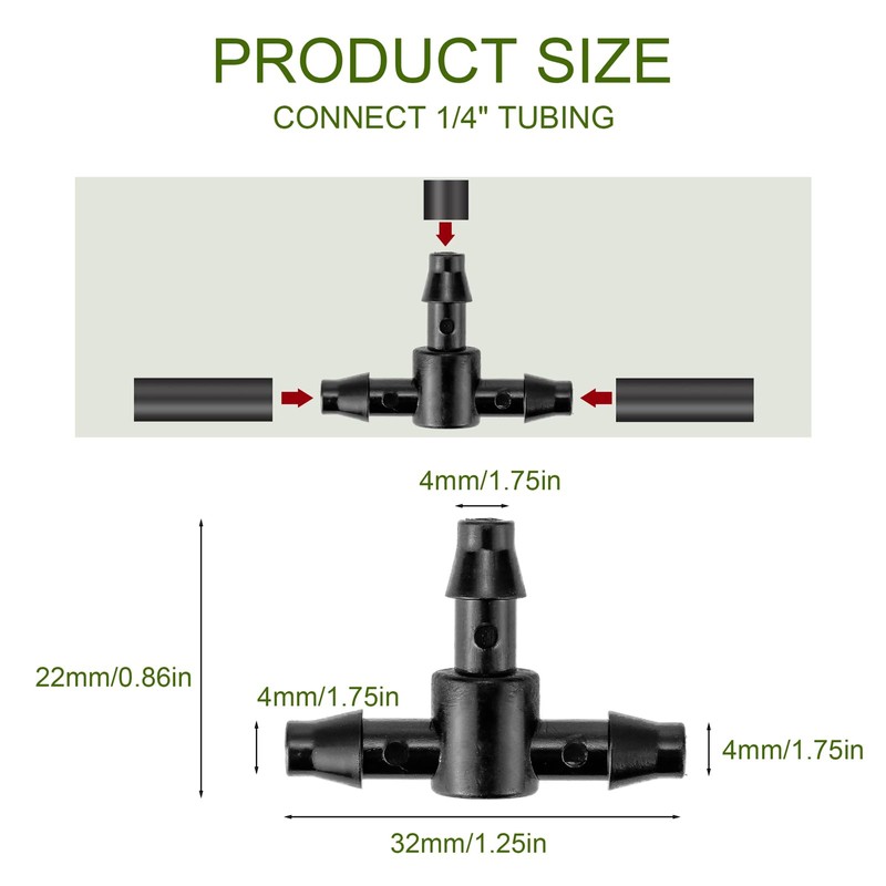 - Package: 50 Tee sprinkler bulkheads. Used with drip irrigation to connect drip micro tubing, the number is sufficient to meet your needs for garden irrigation accessories various needs
