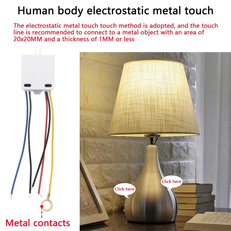 - Wiring: black and red lines connected to 220V input, the other black and blue lines connected to the lamp, the yellow line is the touch signal lines