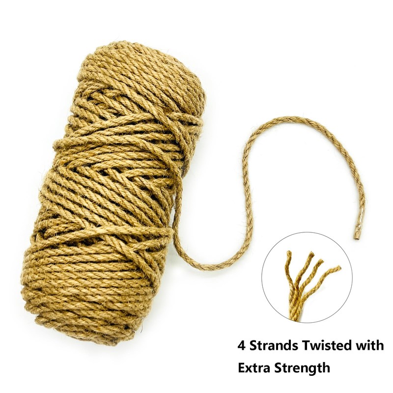 Pxyz Jute Twine 6mm 164feet,1/4 inch Sisal Rope for Cat Scratcher Replacement Rope,Twine String for DIY Arts Crafts,Natural Burlap Ribbon Hemp Twine,Multiple Sizes (6MM x164ft)