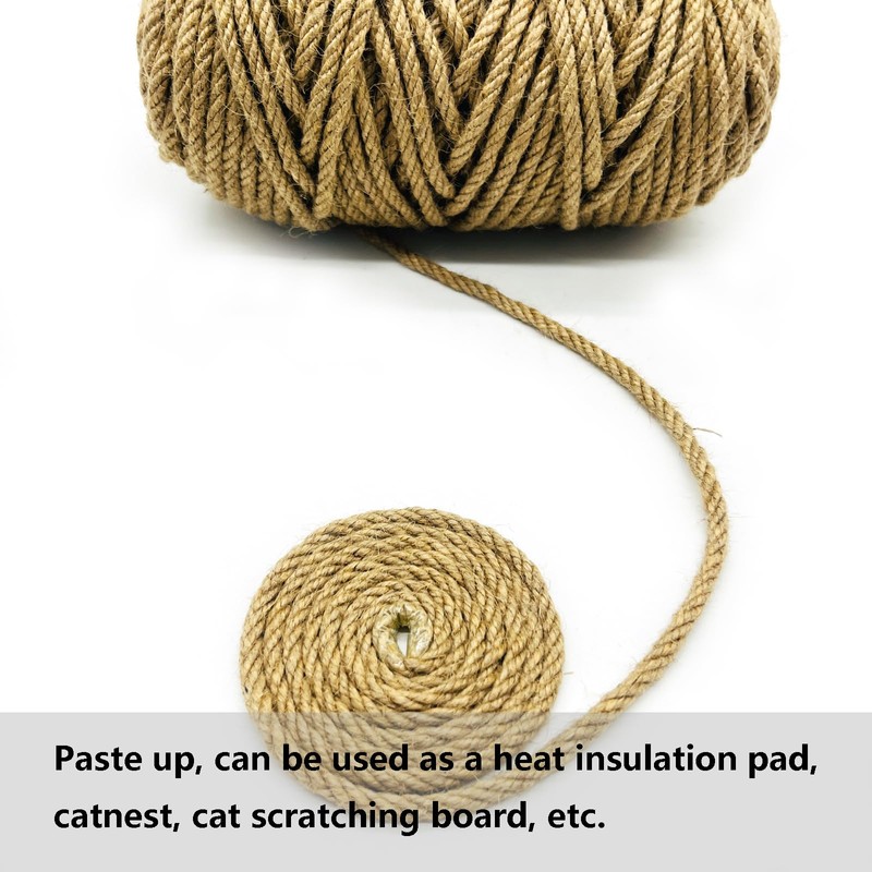 - Versatile Design: This jute rope is exceptionally suited for crafting and maintaining cat trees, cat towers, scratching posts, cushions, and mats. It can also be used to protect furniture by wrapping it around furniture legs, trees, pipes, preventing scratches and wear.