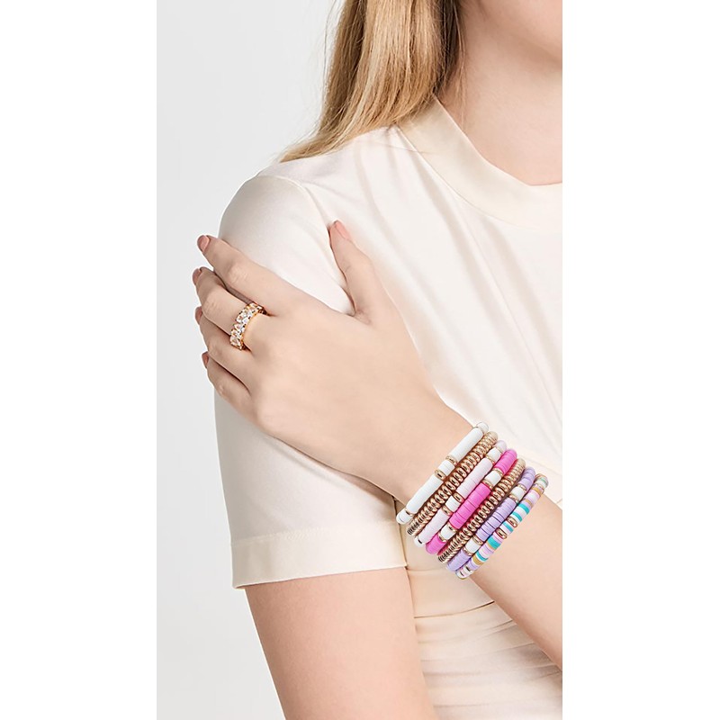 - What You Get: 7Pcs heishi surfer bracelets set, include 2PCS black clay bead bracelet, 2PCS white clay bead bracelet, 2PCS gold plated beaded bracelets and 1PCS mixed bracelet. Trendy and Stylish, you can mix and match with other ones you have too, would look great with most outfits, match a lot of your dresses