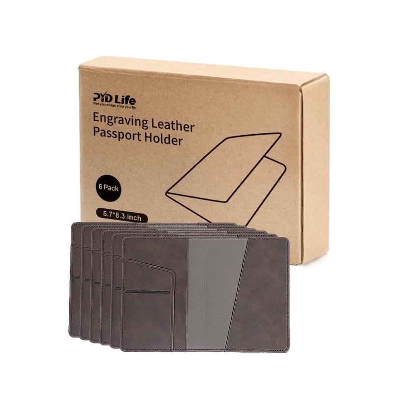 Premium Quality: The leather passport cover has premium quality, it's waterproof to protect your passport or other important documents. Specifications: The passport and vaccine card holder combo leather blanks are 5.7 x 8.3 inches, each piece comes with an individual PP bag,6 pieces are in a large brown box.After engraving,the designs will in black color. DIY Engraving: The premium quality leather passport cover is suitable for laser engraving logo or pattern on it to make it unique. Enough Storage Space: This passport holder can hold your passport, airline tickets, vaccine cards, credit cards and other documents you need for your trip, so you don't have to worry about missing anything.Will be a good choice for your travel. Perfect Custom Gift: The leather passport holders are nice for a custom gift for your friends, family or as a corporate gift,you can add any design you want.Will be a nice choice as Birthday gifts,Mother's Day gifts,Father's Gifts,Valentine's Day gifts or Christmas gifts.