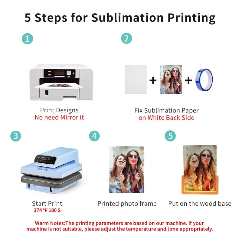 - Easy to Print:We suggest setting 374 F,180 S for heat transfer by heat press machine.The sublimation led photo lights back white side is for printing.When printing the design on sublimation paper,there is no need to mirror it.