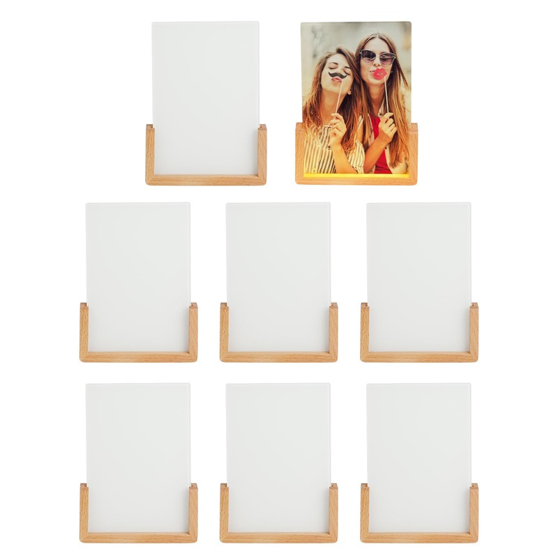 PYD Life 8 Pack Sublimation Night Lights Blanks LED Glass Photo Frames Panels White 5" x 7" with Warm Light,with Wood Stand for Heat Press Machine Printing