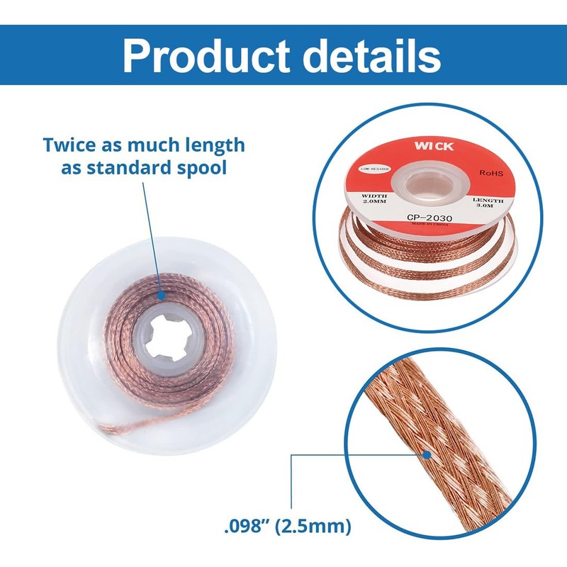 - Clear specifications: 4 desoldering wire variants in widths 2.0/2.5/3.0/3.5 mm. Each cable is 3 metres long, which is very suitable for daily needs. Applicable to different circuit boards, can be selected according to your needs.