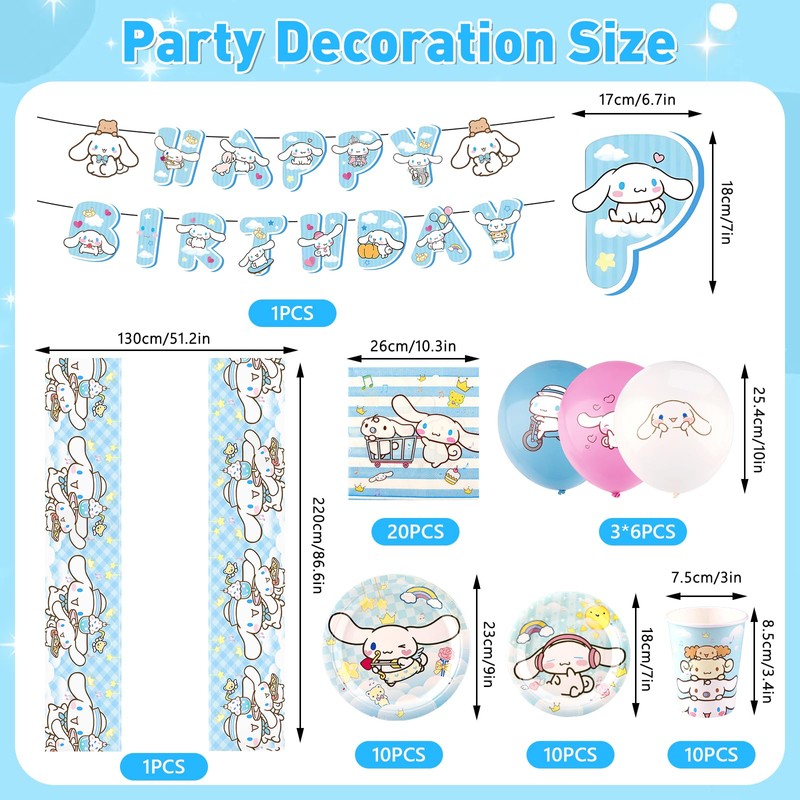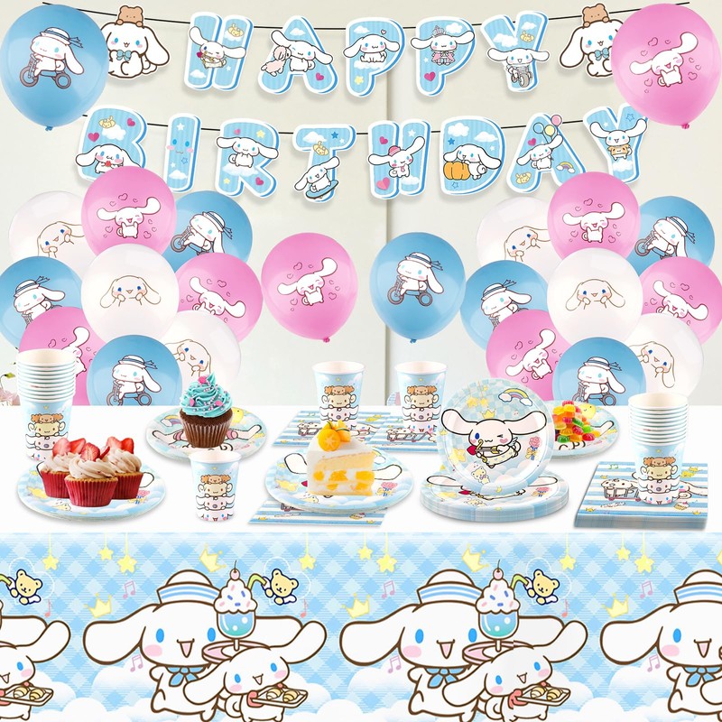 Pygg 70PCS Cinnamon Dog Birthday Party Decorations, Cartoon Theme Party Supplies Include Birthday Banner, Balloons, Happy Birthday Plates, Tablecloth for Kids Birthday Party