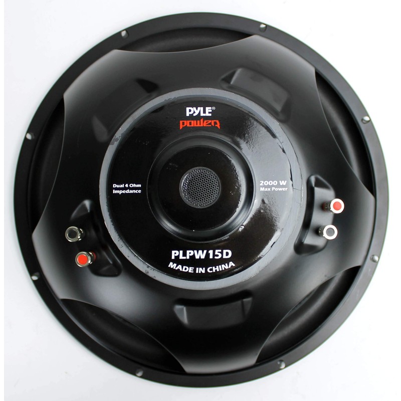 From the Manufacturer15-Inch Dual Voice Coil SubwooferClick here for a larger image Upgrade Your Audio System with New Sound and StyleClick here for a larger image Add Some Bass BounceClick here for a larger image Installation and Specifications DiagramClick here for a larger image Pyle PowerIf you are looking for a clean-cut, powerful, and versatile new sound, Pyle has your audio solution. Add performance and quality enhancement to your audio system with high-quality and rugged subwoofers. Add some serious head-turning bass-bounce with The Pyle PLPW15D Power Series Subwoofer.Pyle subwoofers will bring new life to your audio system. These powerhouses are the driving force behind any great audio setup and will provide you with the sound quality and performance you've been missing. Whether you're looking to upgrade the audio system for your car, boat, motorcycle or RV, Pyle has everything you need to play your music, your way! Superior Sound Quality and PerformanceThe Pyle Power-series subwoofers will push your audio to the MAX! This 15" small-enclosure unit will add extra punch to your low-end and give you that huge sound you want. The sound is produced by a 2.5-Inch 4-layer high-temperature dual voice coil with 95 oz. heavy-duty magnet, pushing 2,000 watt MAX power. It's all housed in a stamped steel basket for durability. Your booming sound is enhanced by the wide, non-fatiguing rubber suspension, specially designed rubber magnet boot, non-press cone, specially treated foam surround, along with bumped and vented motor construction that keeps your equipment safe and extends the life of the subwoofer. Additional Features SPL: 92dB 95 Oz. Magnet Black Steel Basket Non-Press Paper Cone Dual 4 Ohm Impedance 2.5-Inch 4-Layer Dual Voice Coil Specially Treated Foam Surround 1,00 Watt RMS / 2,000 Watt Max Power Spring Loaded Push Down Speaker Terminals Dimensions: 15.3" (Diameter) x 6.3" (Depth) About Pyle HomeThe Pyle Home line includes a wealth of products and accessories designed to enrich your media experiences at home and on the go. Start with your home theater, the entertainment center of any modern house. Pyle has projectors, TVs, mounts, and stands, just to get started--all fully equipped with state-of-the-art HD technology and compatible with next-generation devices and video game consoles like Xbox 360, PlayStation 3, and Wii, as well as your favorite Blu-ray players, for crisp, hi-res images. Then, upgrade your audio with speakers, receivers, subwoofers, MP3 docks, and so much more! Whether you want to upgrade your entertainment experience at home, at the gym, in your car, or even your boat, Pyle has you covered!There's plenty more to keep you, your family, and friends entertained in the Pyle line. Accessories for your iPod like bass-expanding mini speakers that run on rechargeable batteries and play your digital music, wherever you go or even waterproof cases that will leave you feeling worry-free. Perfect for the dorm room or sitting by the pool. Of course, Pyle also carries all types of cables and adapters you need for a fully operational setup that's sure to be the envy of your neighbors. Vintage turntables that get the look of yesterday's classic phonographs with today's high-quality manufacturing standards and technology. Are you always on the move? Treat yourself to some comfort and style with noise-canceling headphones. We can't forget about Pyle's Power amplifiers, horn speakers, and waterproof speakers for your garden. Not to mention, tripods and speaker stands. Pyle Home has it all.Product DescriptionPyle Power speakers pack a huge punch! The PLPW15D is a 15-Inch booming 2000 watt subwoofer designed with the bass lover in mind. This subwoofer will make your music growl in your vehicle or at home, in any type of enclosure: sealed, vented, or open-air. The black plastic basket and non-press paper cone look sleek - and thanks to a 95 oz. magnet, 2.5-Inch four-layer dual voice coil, and specially treated foam surround, it sounds great too. Connect to your amplifier using the spring-loaded, push-down speaker terminals and feel the Pyle Power.