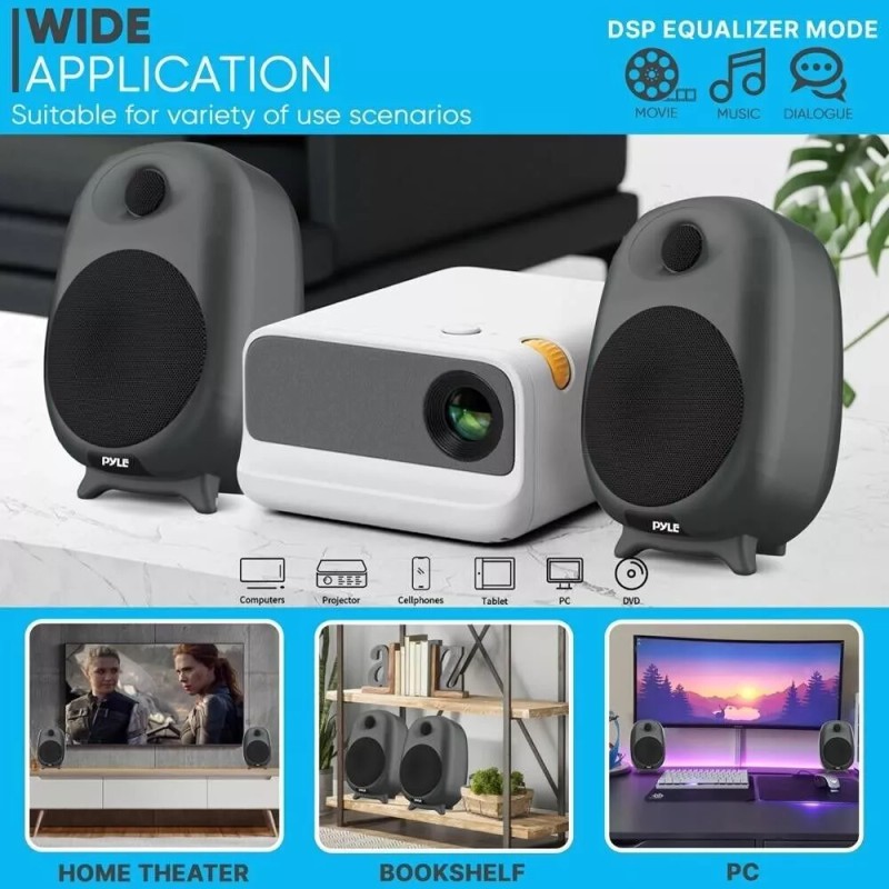 Pyle HiFi Full Range Stereo 60W MAX Bluetooth Bookshelf Speakers 9H 6.1L 6.1W