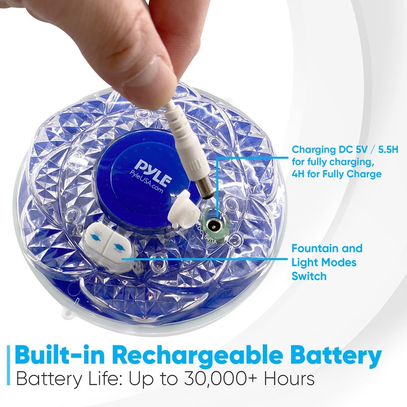Pyle PLEDFN8.5 Pool Fountain with 6 Mode LED Light Show, Water Resistance IP68, Built in Rechargeable Battery, Floating Sprinkler for Swimming Pools & Pond, Multi-Color