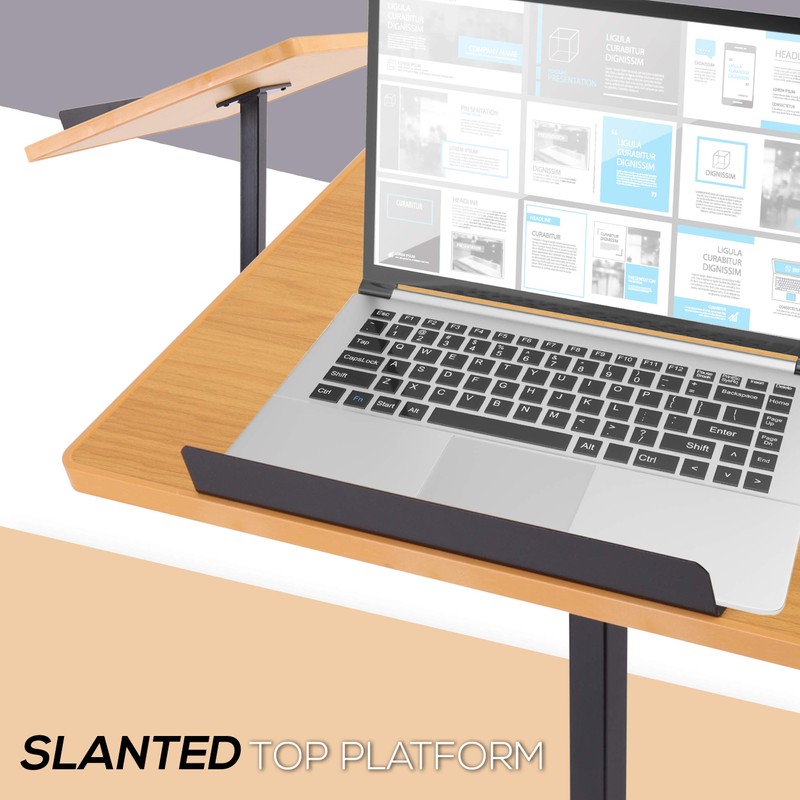 • SLANTED TOP PLATFORM: The podium stand features slanted top platform w/ edge stopper allowing safe placement of electronic devices and appliances such as laptop, monitor or projector and to keep pens, teaching tools, notes, books and reports in place