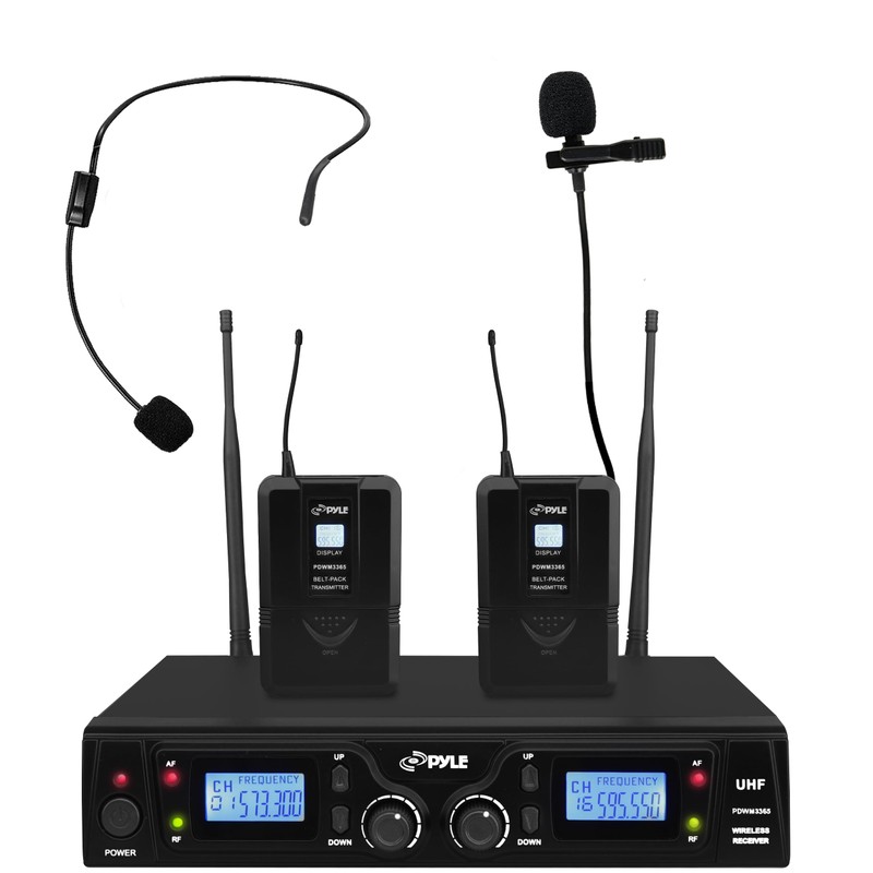 Pyle UHF Wireless Microphone & Rack Mountable Receiver System 2 Belt Packs, 2 Lavelier/Lapel MIC Travel Case 16 Channel Frequency Independent Channel Volume Control LCD Digital Display (PDWM3365)