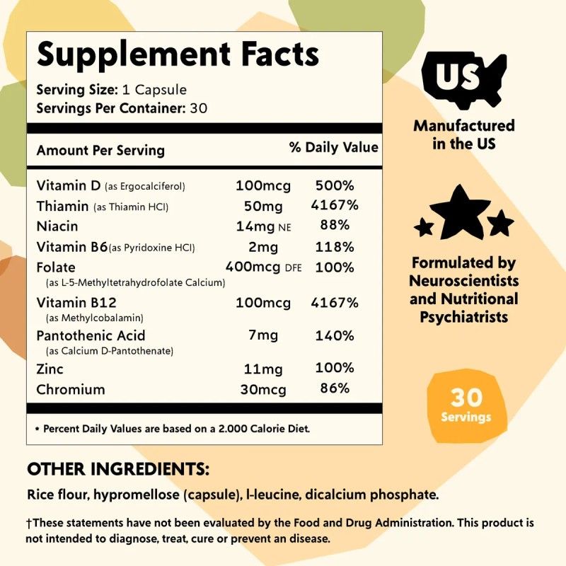 - Un impulso limpio: Formulado por neurocientíficos y psiquiatras nutricionales, nuestras cápsulas veganas son sin OMG, sin gluten y sin azúcar, ayudando a aumentar tu energía y apoyar la función nerviosa con ingredientes naturales.