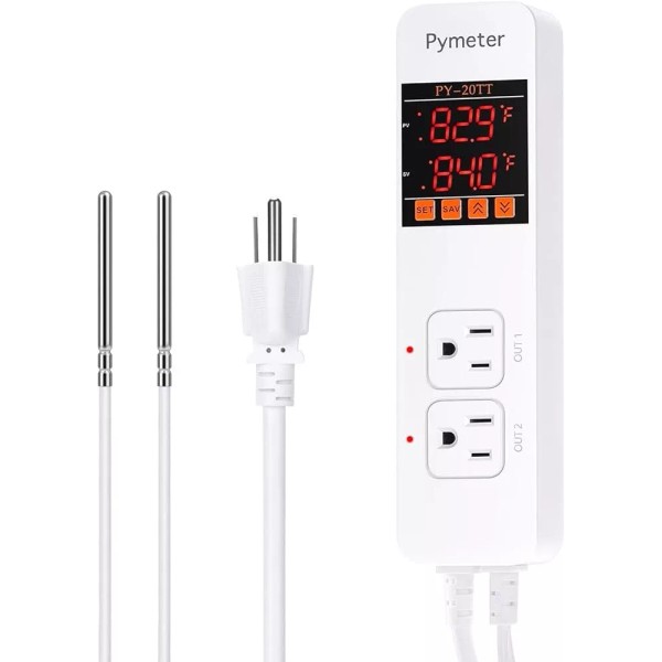 Pymeter 2 in 1 Digital Temperature Controller Dual Outlet Heat Mat Thermostat Reptile...