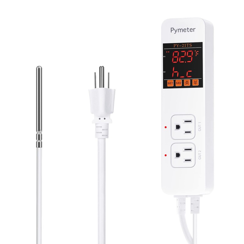 Pymeter Attic Fan Thermostat Controller Temperature Switch Plug Outlet for Seedlings, Germination, Rooting, Greenhouse, Fermentation, Reptile, Terrarium Heating Mats