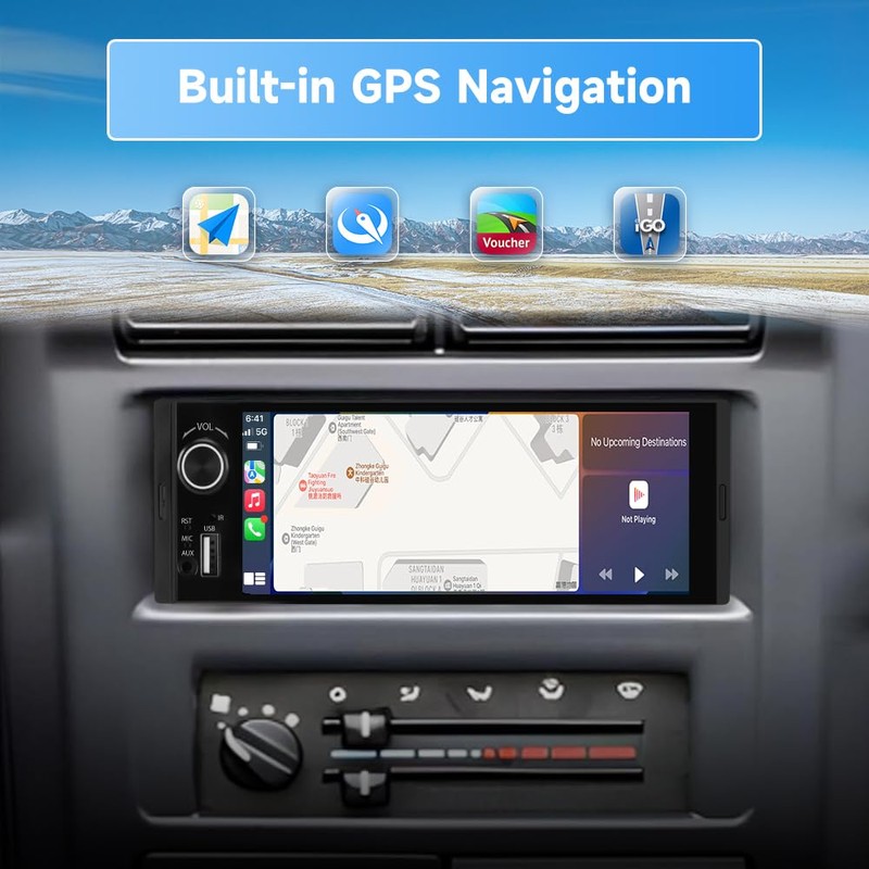 - Single Din Car Ttereo with Wired & Wireless CarPlay & Android Auto Enjoy effortless connectivity with both wired and wireless CarPlay and Android Auto. Simply connect via Bluetooth or USB to access navigation, music, calls, and messages directly on your single din car stereo's touchscreen. Use Siri or G0*gle Assistant for hands-free control, keeping your focus on the road while enhancing your driving experience.