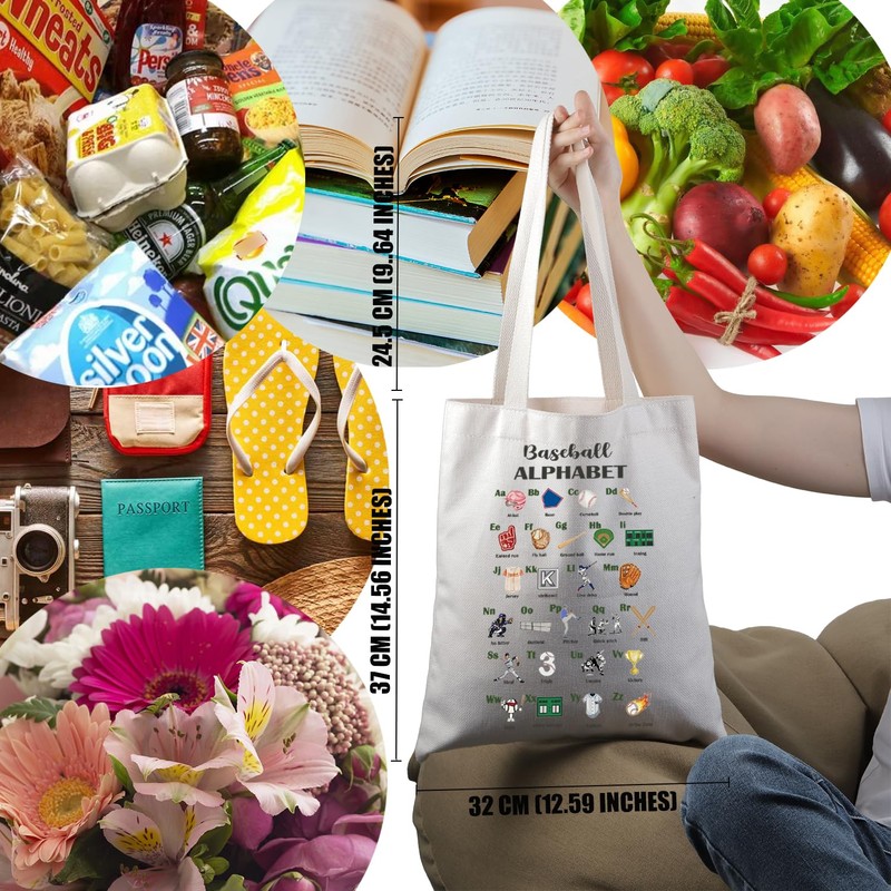PYOUL Baseball Lover Gift Baseball Alphabet Tote Bag Baseball Player Team Handbag Baseball Mom Gift (Baseball Alphabet Tote)