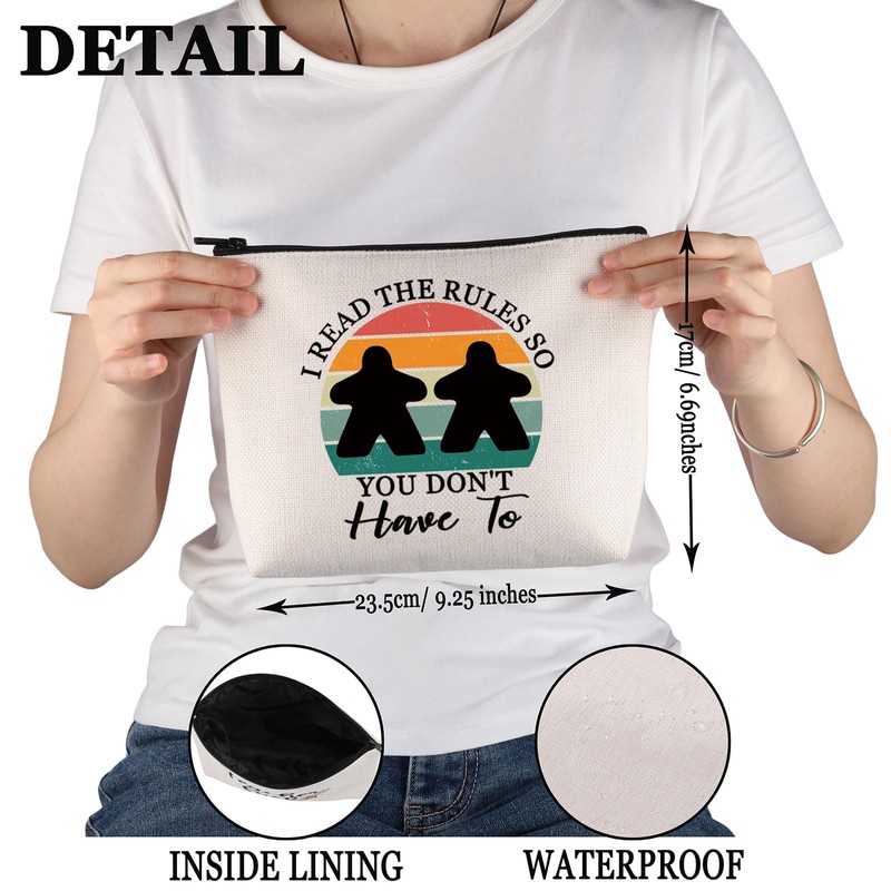 PYOUL Board Game Inspired Gift I Read The Rules So You Don't Have To Makeup Bag Board Game Fan Cosmetic Bag Game Merch, beige
