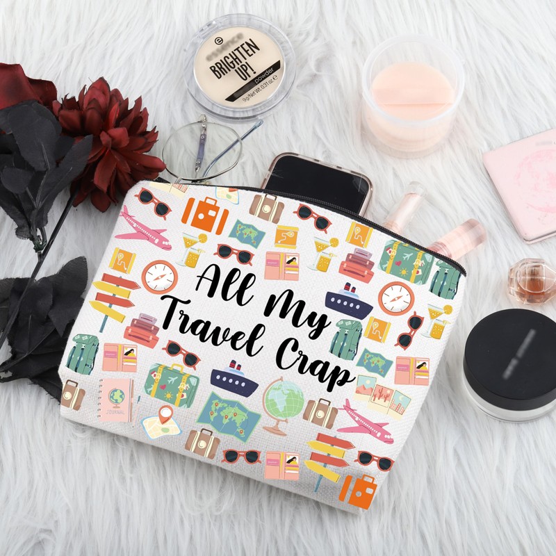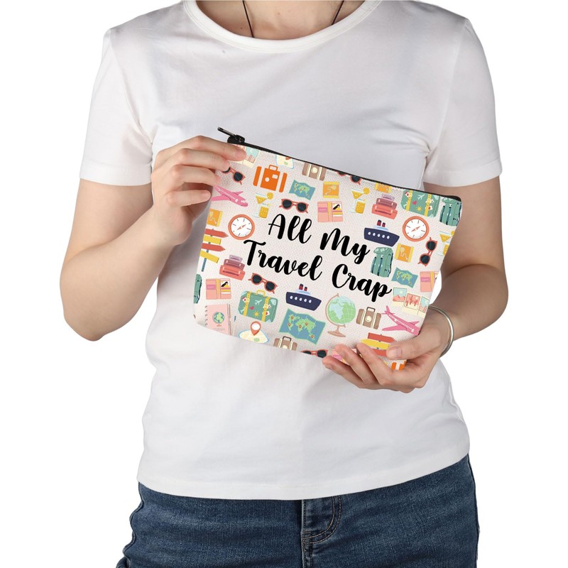PYOUL Travel Lover Gift All My Travel Crap Makeup Bag Adventure Lover Zipper Cosmetic Bag Traveler Themed Gift World-Wide Traveler Zipper Travel Bag (My Travel Crap B)