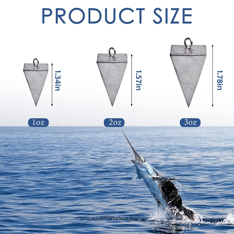 - Available sizes of 1oz, 2oz, 3oz. Excellent for surf fishing and pier fishing. Pyramid sinker holds well in sandy bottoms, and also hold well in rough currents like the surf