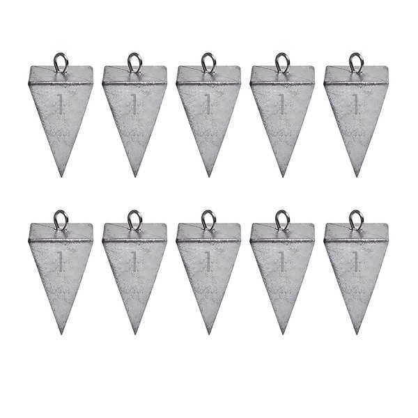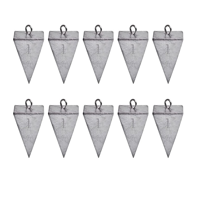 - Pyramid sinker tapered pointy shape allows it to dig into soft surfaces such as sand or mud very well, allowing the bait to be held fairly still in a current, they also drop to the bottom very quickly