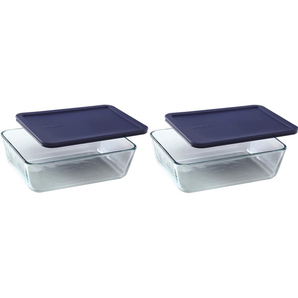 Pyrex 7212 11-Cup Glass Dishes with Dark Blue Lids (2-Pack) - Made in the USA