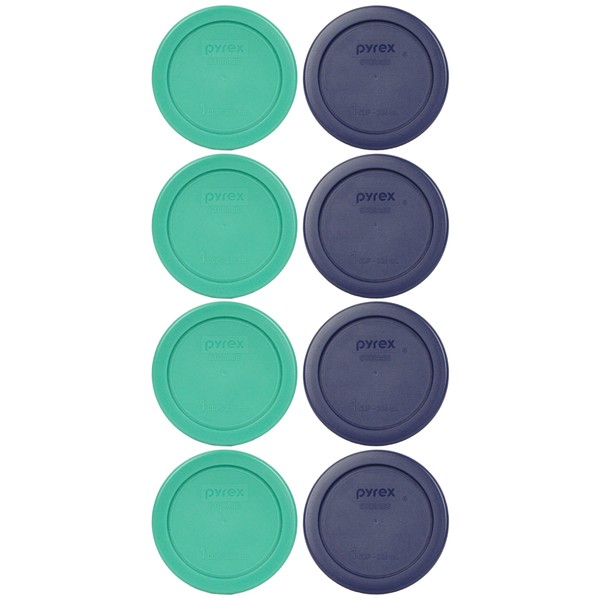 Pyrex 7202-PC 1-Cup (4) Green and (4) Blue Food Storage Replacement Lids - Made in USA