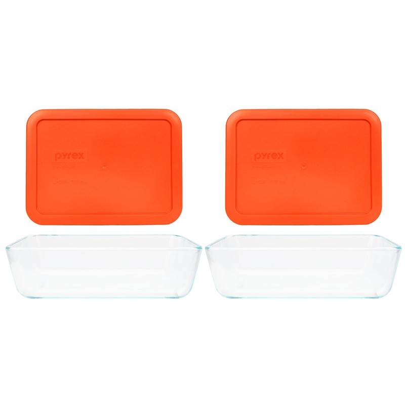 - Included: (2) Pyrex 7210 3-cup glass dish with (2) 7210-PC Pumpkin Orange lid