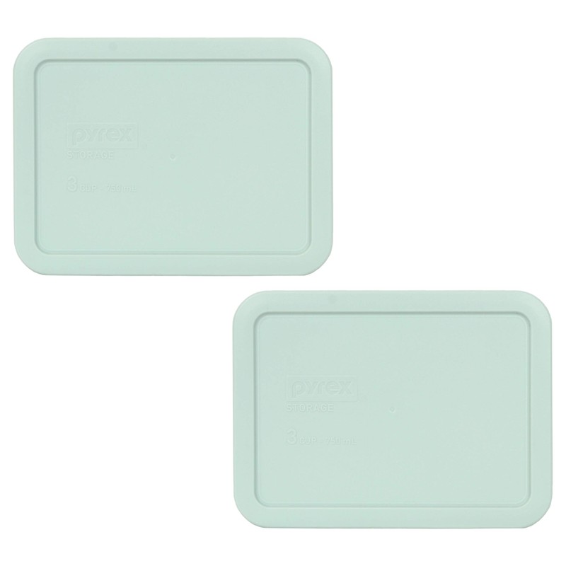 Pyrex 7210-PC 3 Cup Muddy Aqua Food Storage Replacement Lids (2-Pack) - Made in USA