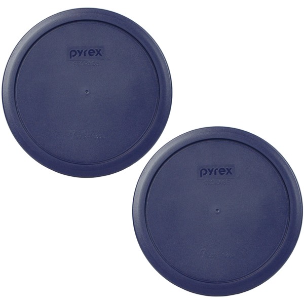 Pyrex 7402-PC Dark Blue 6/7-Cup Round Plastic Food Storage Lids, Made in USA - Original Genuine Pyrex Lids - 2 Pack
