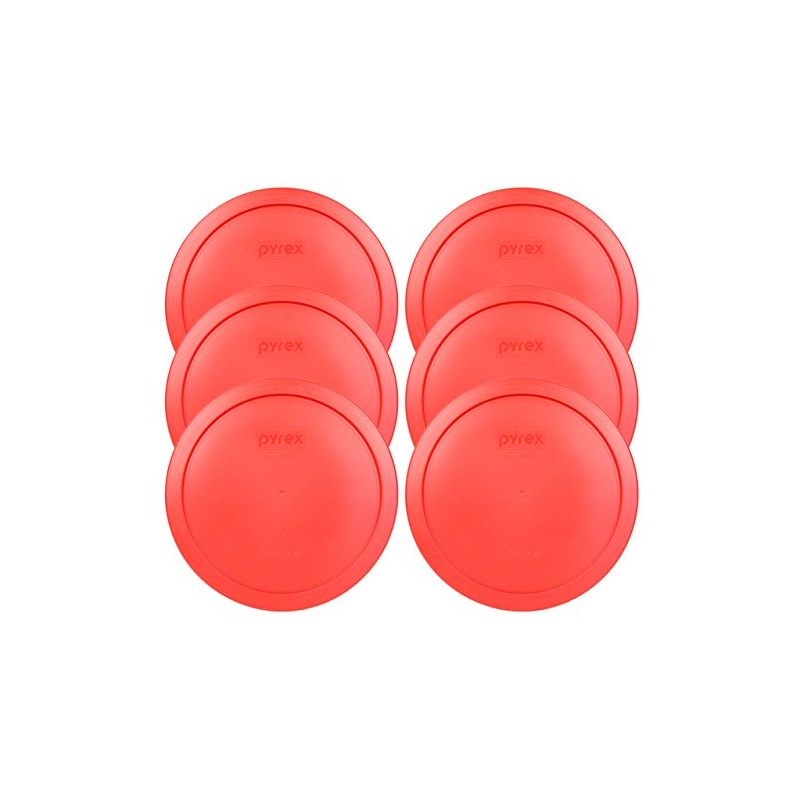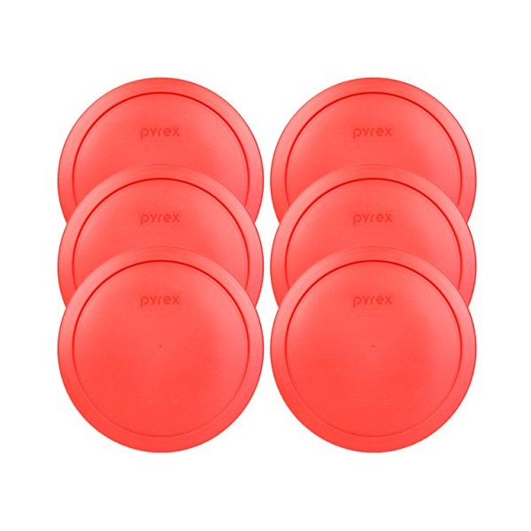 Pyrex 7402-PC Red Round Storage Replacement Lid Cover fits 6 & 7 Cup 7" Dia. Round (6-Pack)