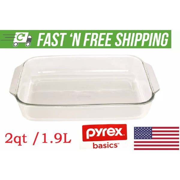 Pyrex Basics 3Qt, 2Qt Glass Oblong Baking Dish Clear Bakeware Kitchenware - 2QT