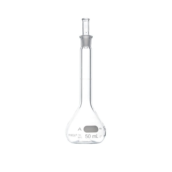 PYREX Class A Volumetric Flask with PYREX Glass Standard Taper Stopper – Borosilicate Glass Flask – Glass Chemistry Flask for Laboratory, Classroom or Home Use - PYREX Lab Glassware, 2/Pk