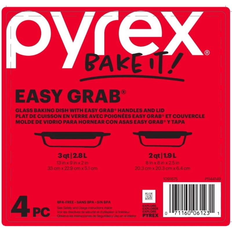 Pyrex Easy Grab 4-piece Glass Bakeware Set with Red Lids