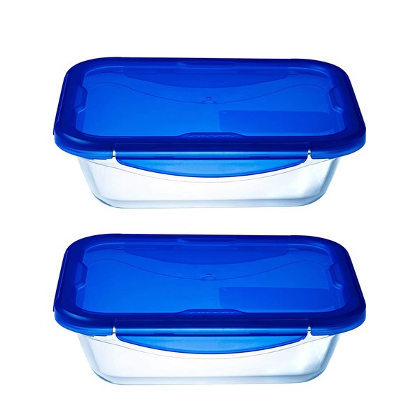 Pyrex Easy Wash Cook & Go Rectangular Container with Lid Small 0.8 Litre Blue (Pack of 2)