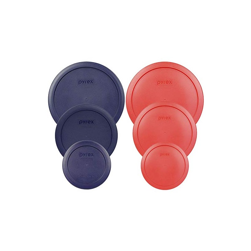 - THIS SET INCLUDES- Genuine Pyrex Replacement Lids Pyrex Round Storage Cover, Replacement Lids for Glass Bowl, 2 (6/7) Cup Red/Blue Lids, 2 (4) Cup Red/Blue Lids, 2 (2) Cup Red/Blue Lids, 6 Lids Total