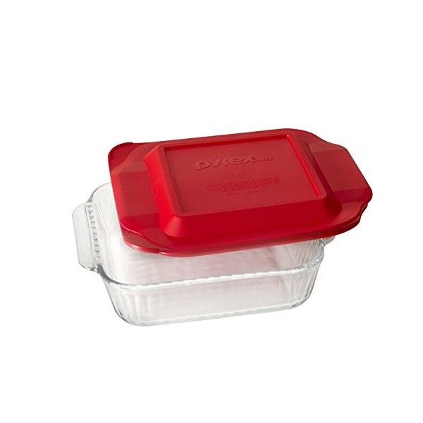 Pyrex Sculpted Baking Dish 8" Square w/ Red Lid