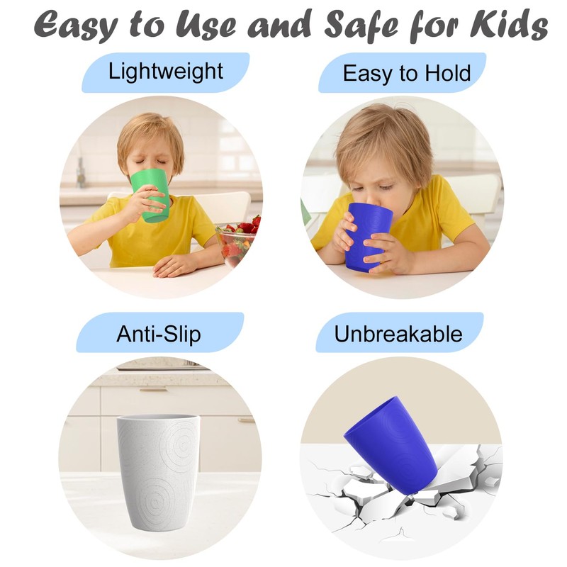 - 【Easy to Hold and Cups for Kids friendly Design】Make mealtime more fun for your kids with our bright and colorful small cups, designed especially for little hands. Made from high-quality wheat straw fiber, they are safe for kid to use.