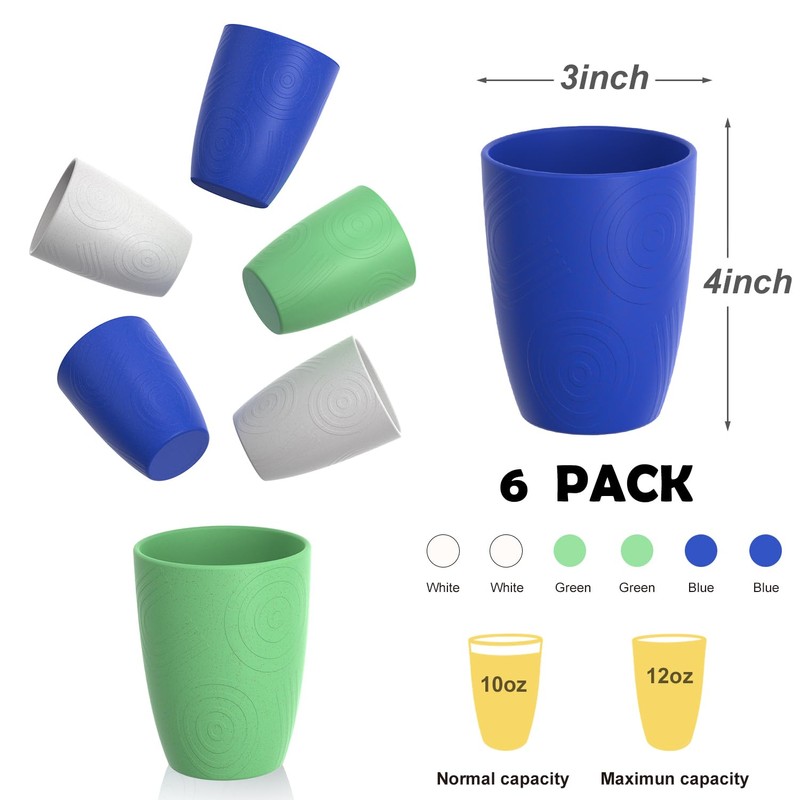 - 【Set of 6 Reusable Wheat Straw Cups】 This cup set includes 6 PCS colorful 12oz cups made from wheat straw material.Perfect for everyday use or outdoor cups such as picnic cups and camping cups.Plus, the wave pattern design on the surface of the cup will greatly enhance your drinking experience.