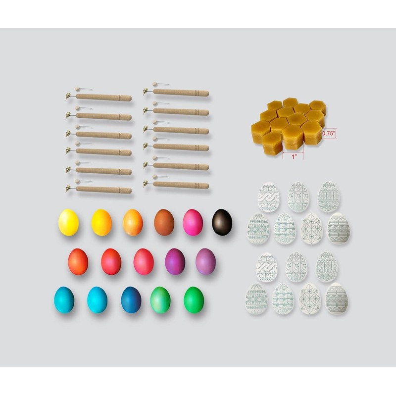 Pysanka Easter Egg Decorating Kit, 12 Wax Pens, 16 Dyes, 12 Combs of Wax, Master Class Group Set with Design Samples