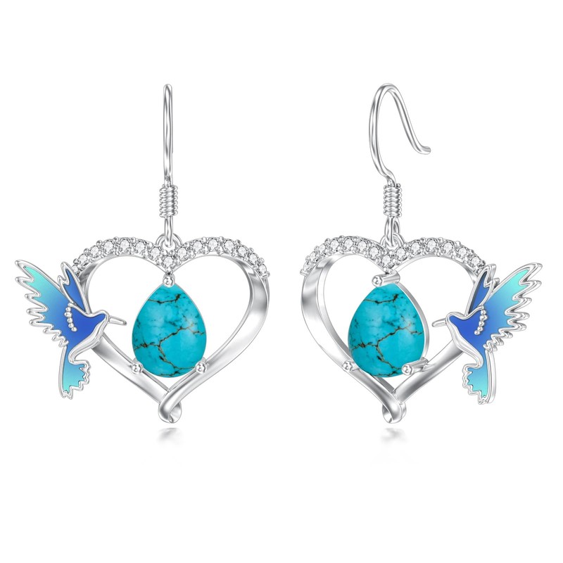 - đź’– Earrings Design: This perfect and exquisite hummingbird turquoise necklace is an eternal classic fashion element. The heart-shaped frame is set with moissanite, and the pear-shaped turquoise is located in the middle of the necklace, highlighting its beauty. Turquoise brings hope, energy, victory, good luck and motivation.