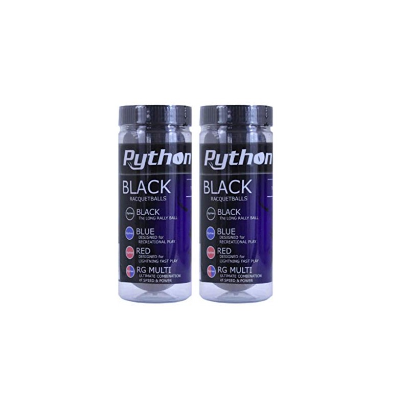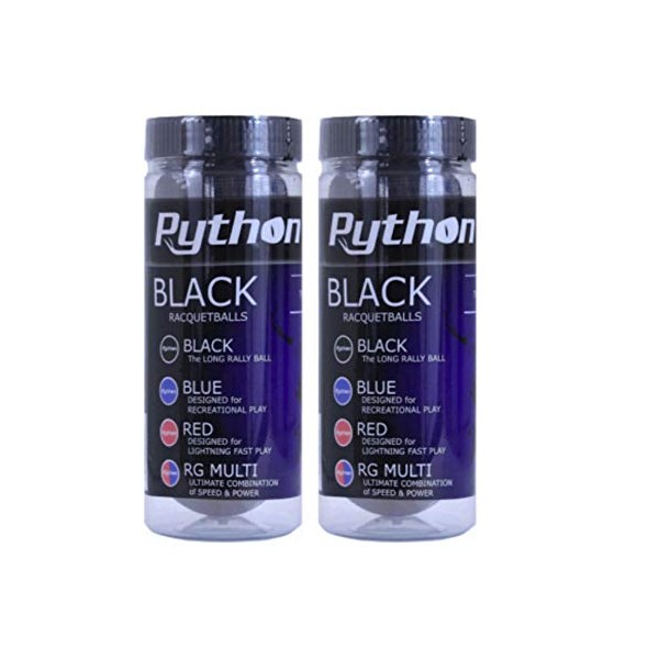 Python 3 Ball Can Black Racquetballs (Long Rally Ball!) (2-Packs/Cans, 6-Balls)