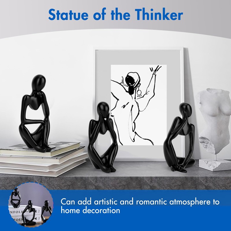 PZJFH Nordic Thinker Statue, 3Pcs Resin Thinker Statue Thinker Figurine Handmade Thinker Ornament, For Office Home Desktop Decoration(Black)