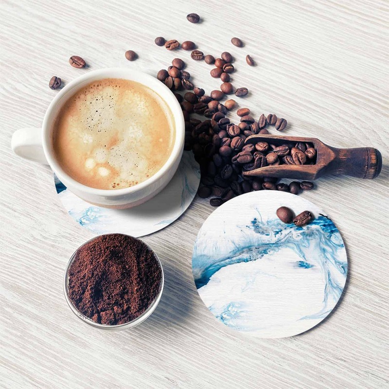 Pznen Blue Creative Liquid Coasters for Drinks 2 Pack Marble Texture Modern Contemporary Art Tabletop Protection Kitchen and Coffee Table Décor & Accessories,Set of 2