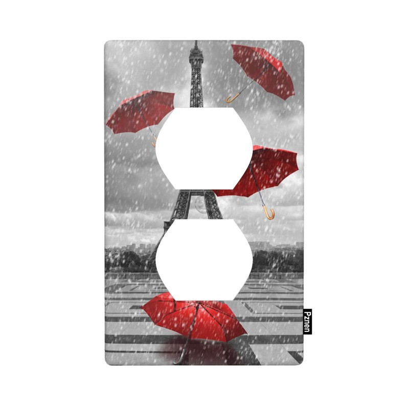 Pznen Eiffel Tower Red Umbrella Wall Plate Cover Paris Rainy Day Cityscape Outlet Covers 1-Gang Switch Plug Duplex Cover Home Bedroom Bathroom Kitchen