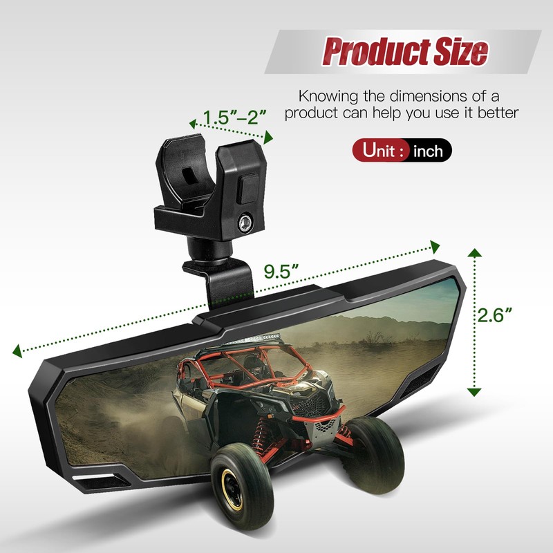 - 【Applicable Scope】PZWLI UTV Center Rear View Mirror for 1.5" - 2" roll bar cages. Compatible with Polaris RZR, Arctic Cat Wildcat, Pioneer, CFMOTO, Kawasaki Teryx, Commander Maverick X3, Viking, Rhino, Kubota RTV