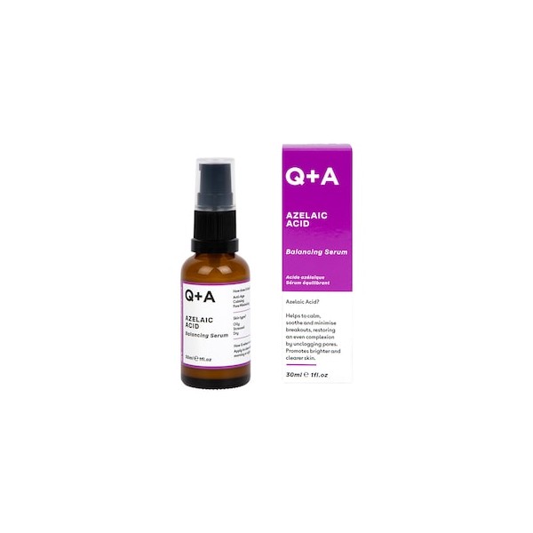 Q+A Azelaic Acid Balancing Serum is answering the call for clear, bright skin, and is perfect for congested, stressed and blemish-prone skin types.