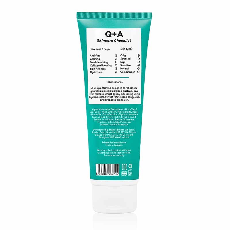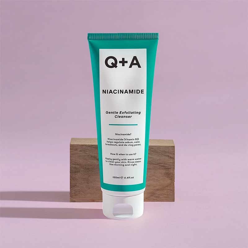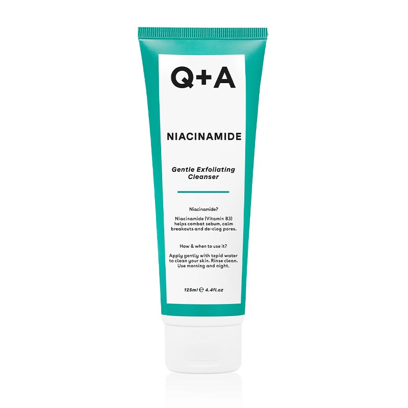 Q+A Niacinamide Gentle Exfoliating Cleanser is a calming and gentle exfoliator and cleanser in one, for stressed out and blemish prone skin.