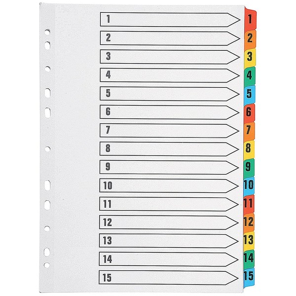 Q-Connect Index A4 Multi-Punched 1-15 Reinforced Multi-Colour Numbered Tabs KF01520